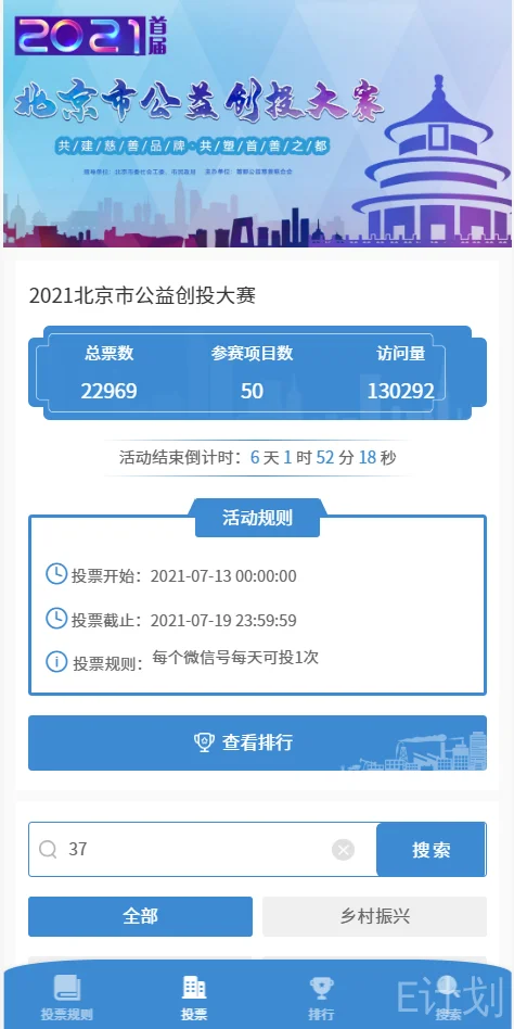 【投票方式】点击下方链接,找到37号“通慈义卖平台”项目,点击“投票”按键,再点击“确认投票”按键即可,连续7天每人每天1次投票机会。【点我投票】
